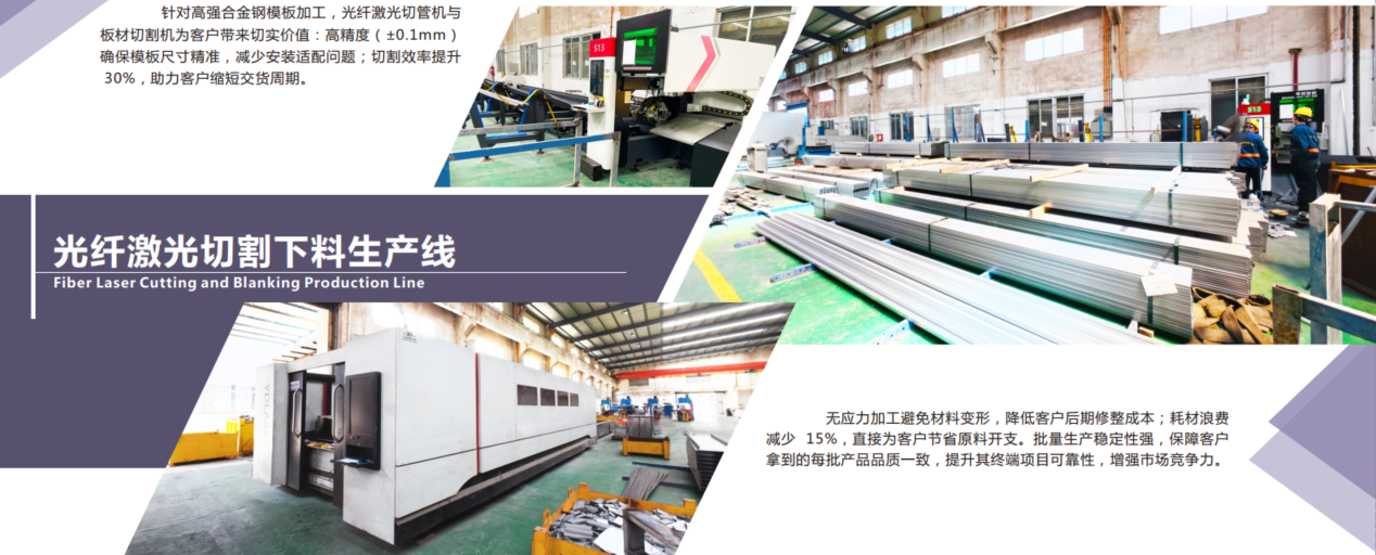 Nhằm đáp ứng nhu cầu gia công tấm thép hợp kim cường độ cao, máy cắt laser sợi quang và máy cắt ống/tấm mang đến độ chính xác vượt trội (độ chính xác cao, sai số ±0,1mm), đảm bảo kích thước tấm chính xác, giảm thiểu lỗi lắp ráp, nâng cao hiệu suất cắt lên 30%, giúp khách hàng rút ngắn chu kỳ giao hàng.