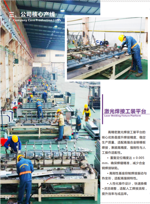 Ưu điểm cốt lõi của nền tảng đồ gá hàn laser là đảm bảo độ ổn định trong quá trình hàn, cải thiện chất lượng sản phẩm, đồng thời tăng cường độ bền và khả năng chịu lực của tấm thép hợp kim sau khi hàn. Hệ thống định vị chính xác giúp giảm sai số lắp ráp giữa mối hàn và đồ gá.